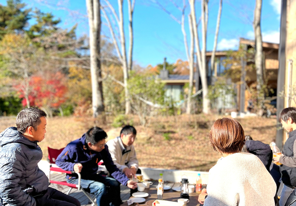 会議室では出ない「本音」を、森の中で語り合う。